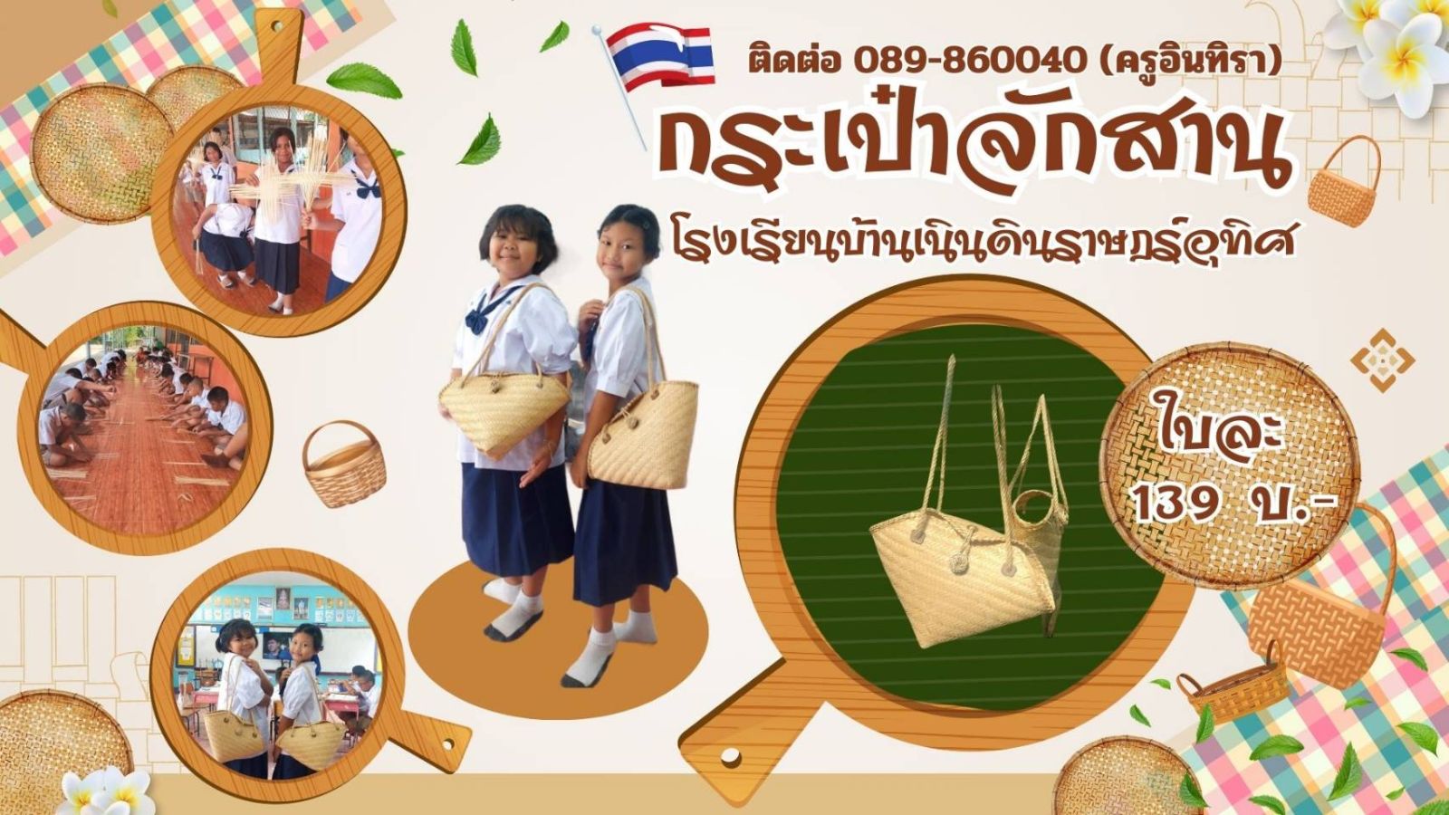 กระเป๋าจักสาน ทำมาจากวัสดุไม้ไผ่จากชุมชน สามารถเพิ่มรายได้ให้นักเรียนและโรงเรียน และเพื่ออนุรักษ์ภูมิปัญญาท้องถิ่น เพียงใบละ 139 บาท เท่านั้น !!!!